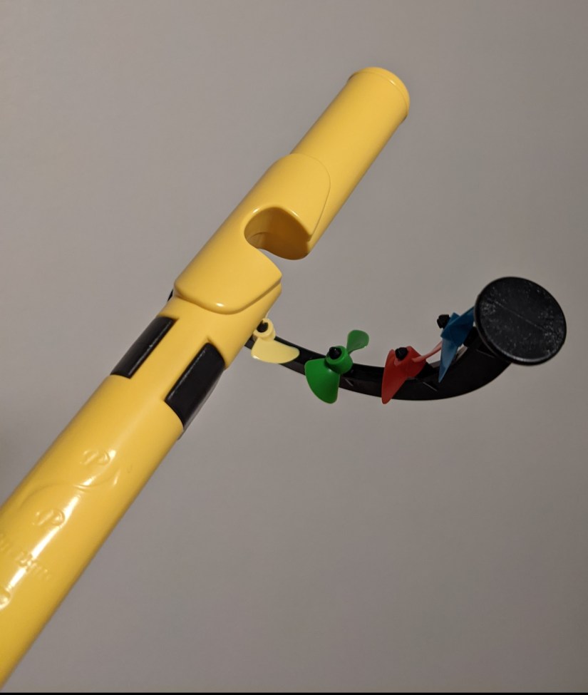 That’s right, the Pneumo Pro. Collinsdictionary.com defines pneumo- as “related to the lungs” or another definition is relating to the presence of air. Developed by Kathy Blocki, the Pneumo Pro is a wonderful device to help flute players produce a beautiful flute tone through improving their awareness of their breath and lip placement. Sometimes with younger students I just call it the “yellow spinner thing”. It helps flutists actually see where their air stream is going, how fast they are blowing, and how to pinpoint their air stream.