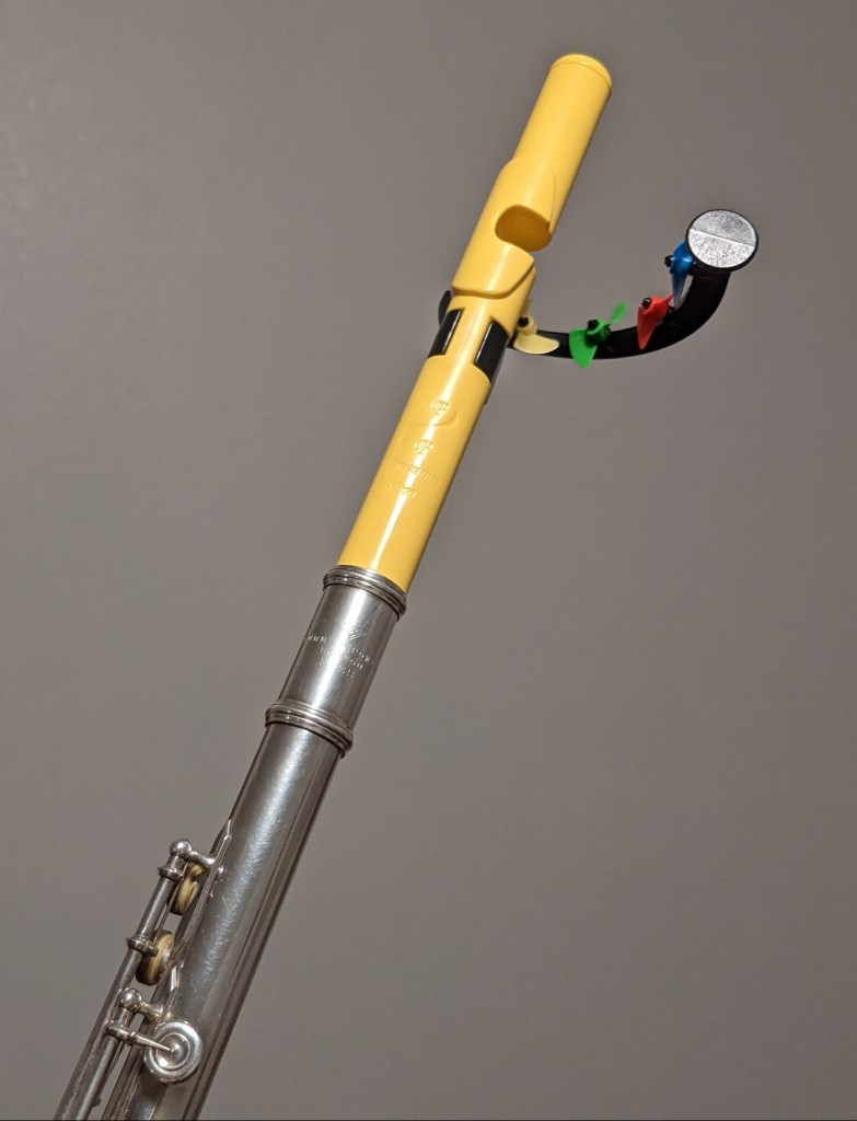 I obviously use it with my beginner students, but frequently use it with all my students, intermediate through advanced and my adult students. In the pictures below, I traded his headjoint for the Pneumo Pro and had him “play” a passage. Then I put his headjoint back on and had him play the same passage which resulted in a noticeable improvement of his tone within seconds.