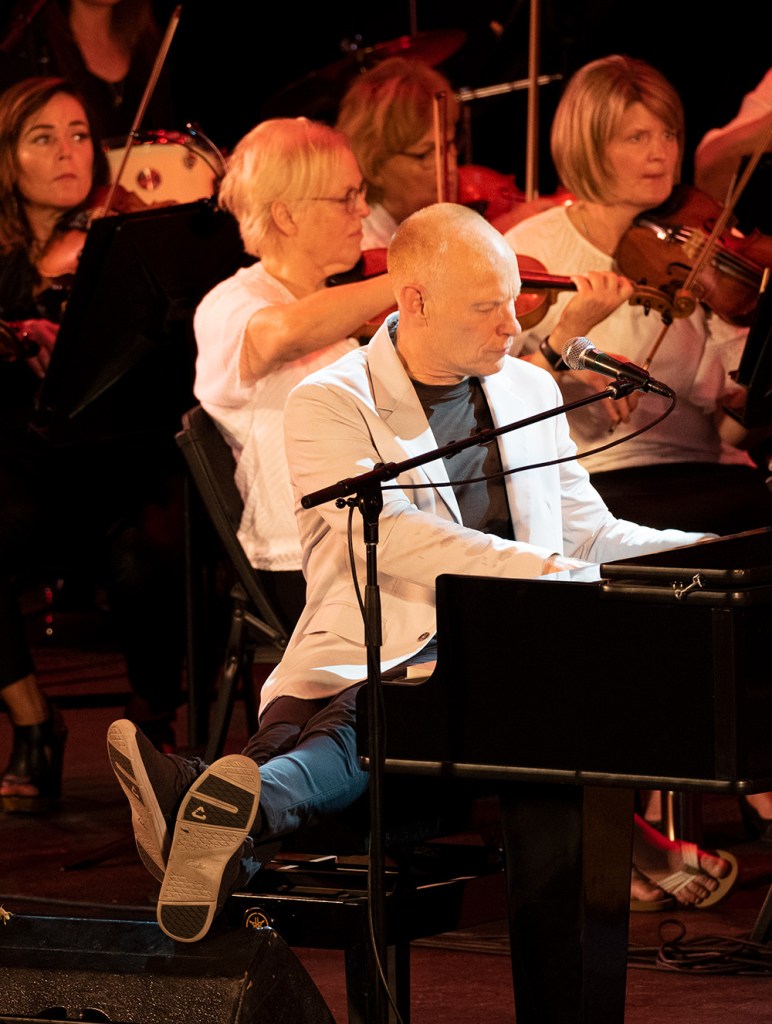 There are performers and then there are entertainers. Another example from our show is that at the end of playing Charlie Brown with the symphony, he turned around and sat on the piano keys for the last note as he threw his hands in the air. And did you happen to notice how he is sitting in this picture to the right? No question about it; Jon is an entertainer. Such a fun night!!