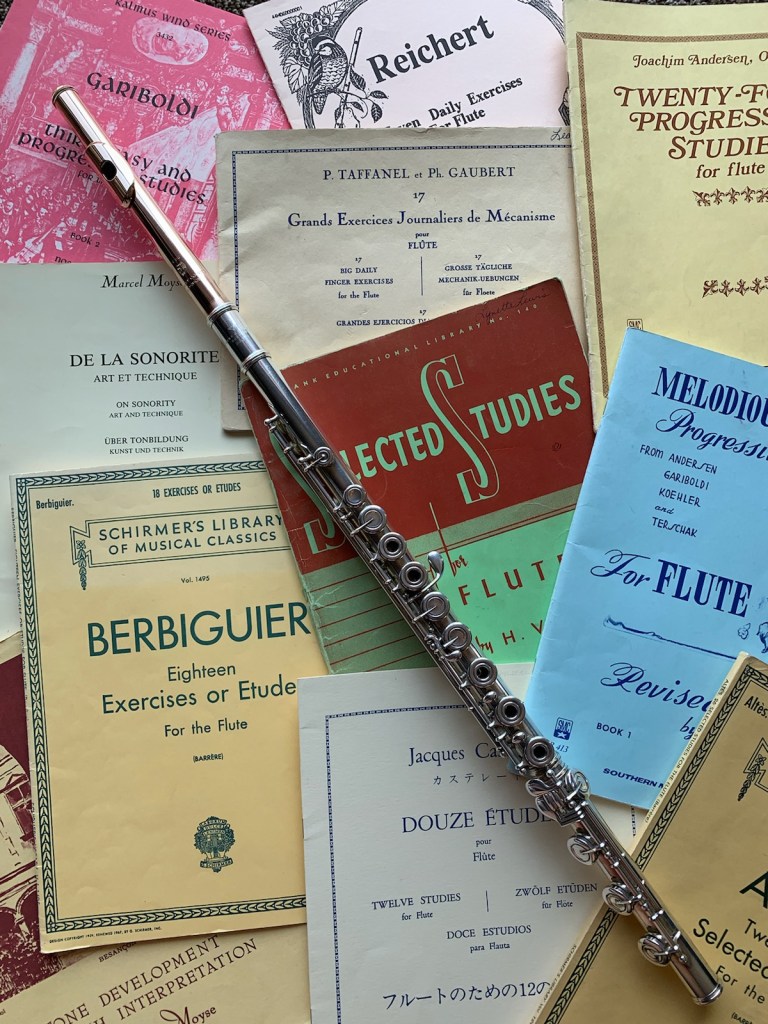 Technique: Piano players have Hanon exercises. Flute players have the Taffanel and Gaubert 17 Daily Exercises for Flute which is a vast collection of scales, 3rds, 6ths, and arpeggios. It is essential to any flute players development to spend a lot of time with these exercises. One of my teachers shared a true story of a friend of his who was part of a professional symphony orchestra. While staying in a hotel one night while the orchestra was on tour, what do you think the principal oboe player was practicing? You guessed it…scales. It is one of the foundations of music and critical for any musician at any level.